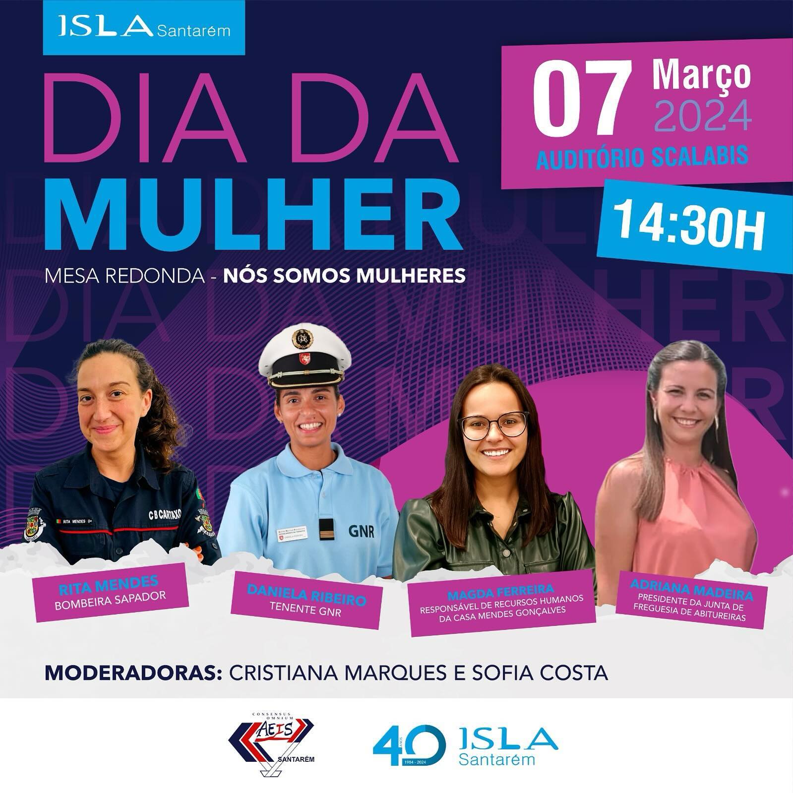 No seguimento dessas atividades, no dia 7 de março de 2024, às 14h30, no Auditório Scalabis, a Associação de Estudantes, em parceria com o ISLA, apresenta a conferência intitulada "Nós Somos Mulheres".