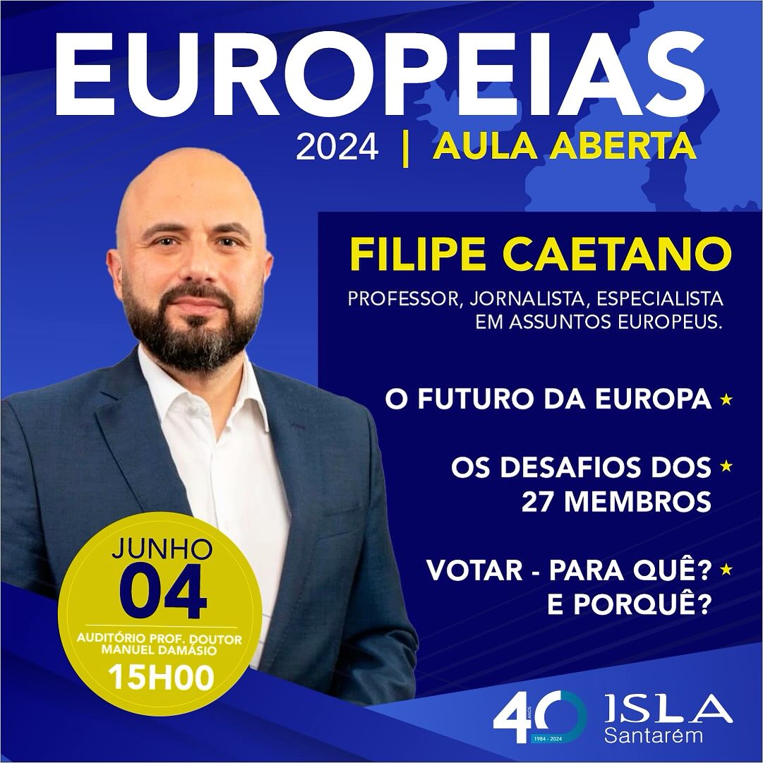 No dia 4 de junho de 2024, às 15h, no Auditório Professor Manuel Damásio, terá lugar uma importante conversa com Filipe Caetano. O evento é uma iniciativa promovida pelo ISLA Santarém, destinada à nossa comunidade académica.