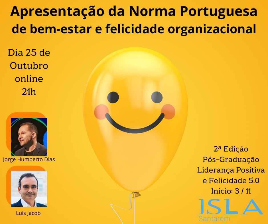 Este evento online, que se realizará no dia 25 de outubro 2023 às 21h, marca a apresentação da Norma Portuguesa de Bem-Estar e Felicidade Organizacional, um documento essencial para promover ambientes de trabalho saudáveis e felizes em Portugal. A norma é um passo significativo para melhorar a qualidade de vida dos colaboradores e a eficiência das organizações.